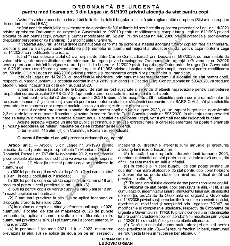Jun 07, 2020 · 7 iunie 2020, 10:00 politica update articol:.. Desi legea prevedea dublarea alocatiilor incepand cu 1 august 2020, guvernul a optat pentru o crestere treptata. Începând cu luna august a acestui an, alocația crește cu 20% procent aplicat diferenței dintre 300 de lei și cuantumul actual, potrivit proiectului de oug.. Lipsa surselor de finantare care sa sustina dublarea imediata.
